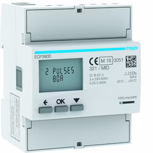 Hager energimätare 3-fas 80A med pulsutgång är en MID-godkänd fyrkvadrantisk energimätare för direktmätning i trefasinstallationer upp till 80 A. Mätaren är avsedd för montage på DIN-skena, upptar 4 moduler och är framtagen för avancerad energiövervakning i bostads- och kommersiella byggnader.